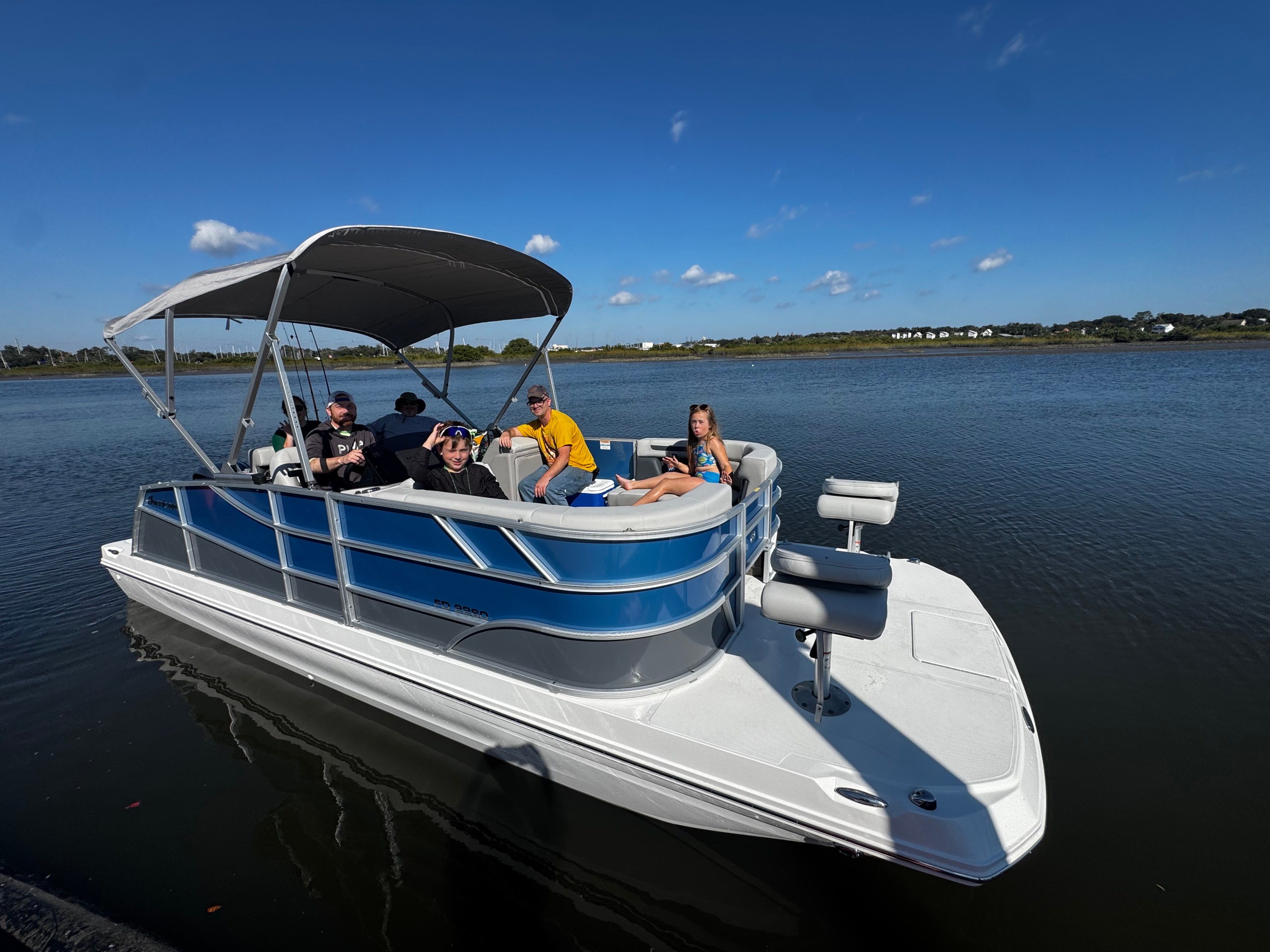 Equipped with a Garmin GPS system, navigation is straightforward and stress-free, allowing you to focus on your surroundings. For entertainment, a Bluetooth radio with seatback speakers ensures that everyone on board can enjoy their favorite music, enhancing the overall atmosphere during your time on the water. With a built-in cooler and plenty of space to spread out and relax, this vessel is ideal for creating memorable experiences with family and friends.